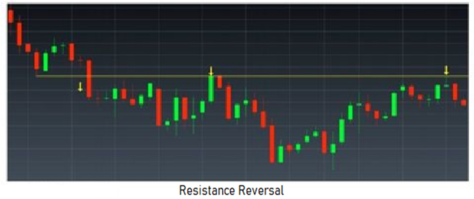 Once broken, support and resistance levels reverse roles. This is a key aspect of support and resistance identification: once a level (whether support or resistance) is broken, the technical characteristic of the level is reversed. That is, a broken support now becomes a resistance and a broken resistance now becomes a support. This can be seen in below figure.