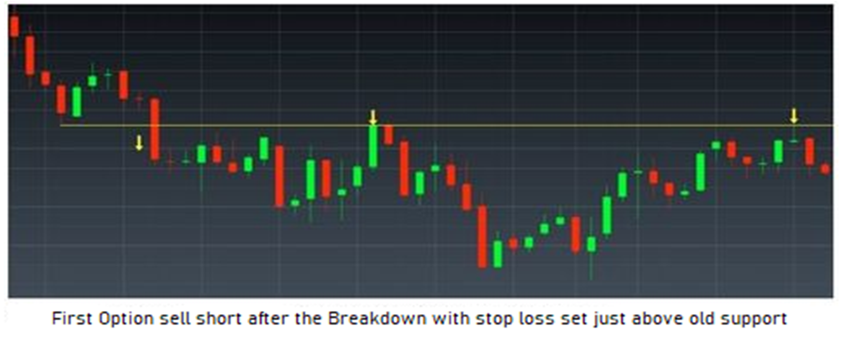 In this example a support has been broken and the price has dropped much lower. Over time the price action has recovered to just below the old support, which is now expected to have reversed, to become a resistance level.